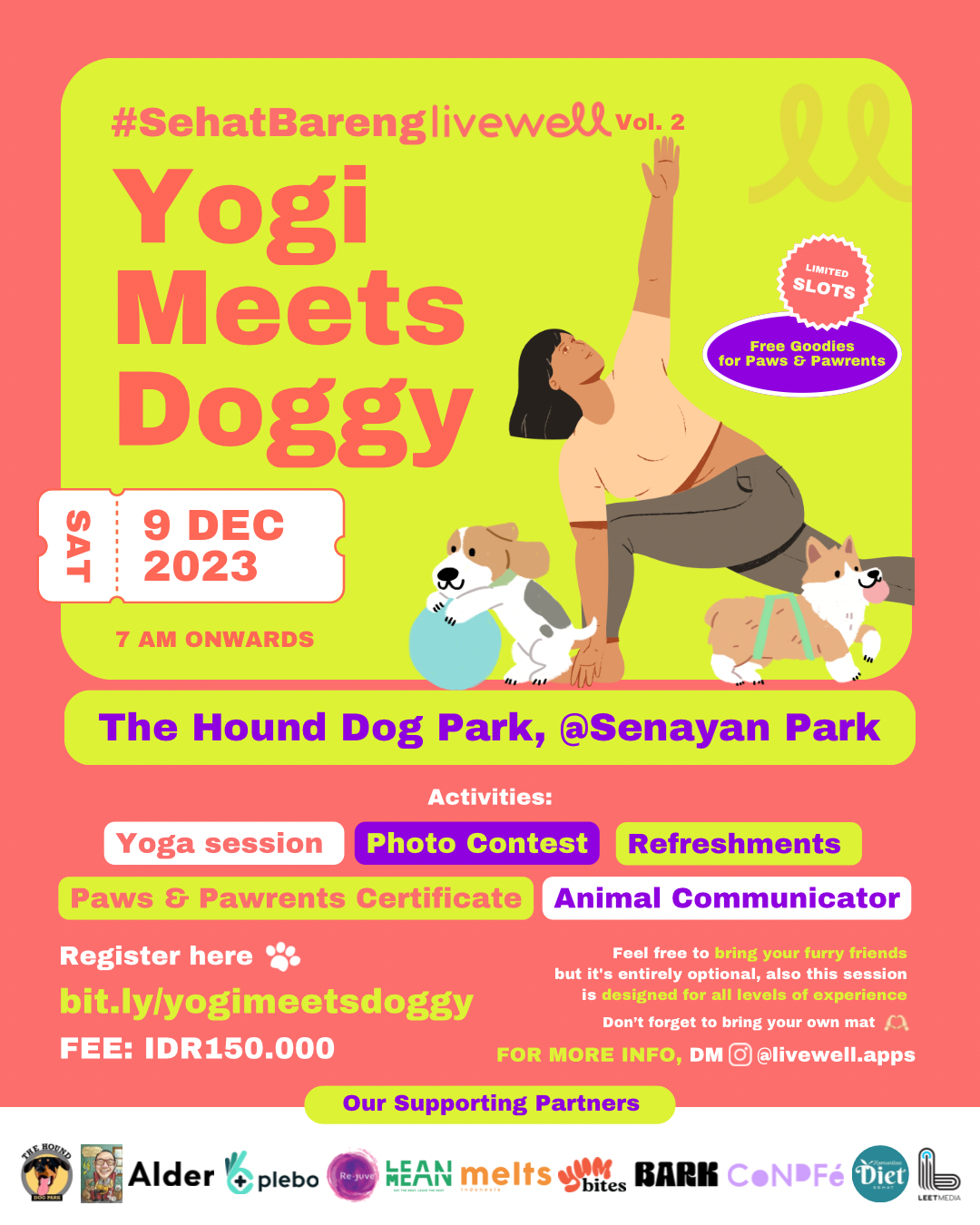 Offline Session with Doolittle Karmic Animal Communicator will be held on December 9th 2023 at 07.00 AM – 09.00 AM in The Hound Dog Park. Senayan Park, Jakarta.