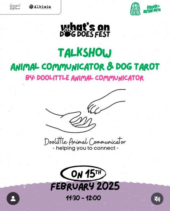 Offline Session with Doolittle Karmic Animal Communicator will be held on February 14th – 16th 2025 at 10.00 AM – 21.00 PM in Urban Forest Cipete, Jakarta Selatan.