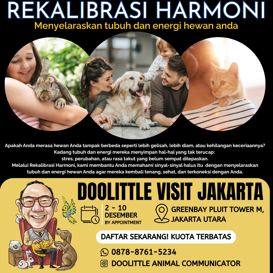 Offline Session with Doolittle Karmic Animal Communicator will be held on December 2th – 10th 2025 in Greenbay Pluit, Jakarta Utara.